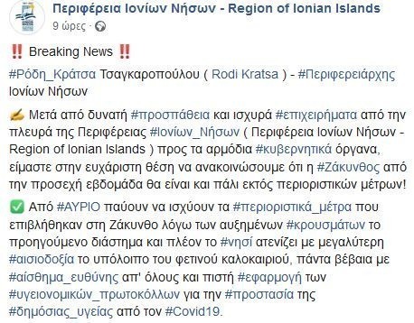 Έτσι σήμερα αναμένεται εκ νέου ανακοίνωση από την Πολιτική Προστασία, σύμφωνα με την οποία η Ζάκυνθος επανέρχεται στο καθεστώς πριν από το το mini lock down.
