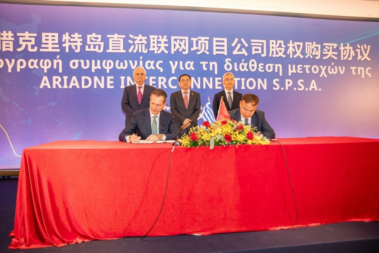 Τη συμφωνία για την διάθεση του 20% των μετοχών της θυγατρικής εταιρείας του ΑΔΜΗΕ και φορέα υλοποίησης της ηλεκτρικής διασύνδεσης Κρήτης-Αττικής, Ariadne Interconnection, στην State Grid International Development (SGID), υπέγραψαν ο Πρόεδρος και Διευθύνων Σύμβουλος του Διαχειριστή κ. Μάνος Μανουσάκης και ο Πρόεδρος της SGID κ. Yu Jun.
