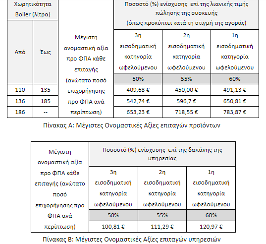 Η επιδότηση ανέρχεται έως 60% της δαπάνης αγοράς κάθε νέου ηλιακού θερμοσίφωνα. Κάθε ωφελούμενος θα λάβει επιταγή (voucher), την οποία μπορεί να εξαργυρώσει σε προμηθευτή της επιλογής του. Στο ανώτατο ποσό επιχορήγησης για τους δικαιούχους συμπεριλαμβάνεται και το κόστος εγκατάστασης.