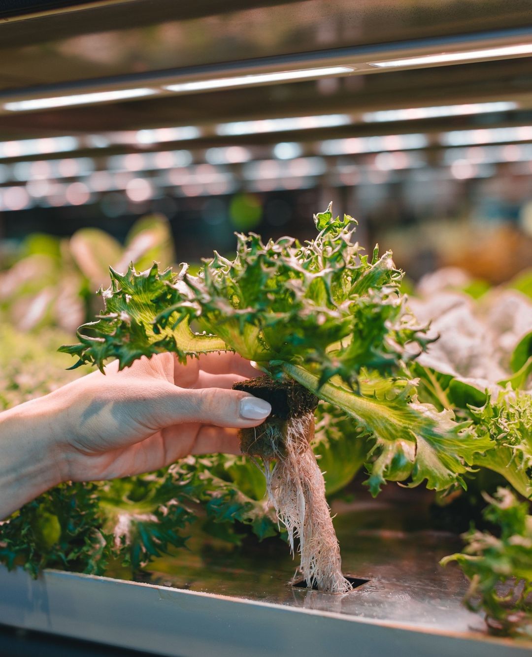 Οι ρίζες των λαχανικών βυθίζονται σε ένα διάλυμα με νερό, μέταλλα και οξυγόνο, διασφαλίζοντας ταχύτερη ανάπτυξη και λιγότερη κατανάλωση νερού. Συνολικά, η μείωση κατανάλωσης νερού που επιτυγχάνεται αγγίζει το 90% και επιτρέπει την ανάπτυξη λαχανικών ακόμα και μέχρι 10 φορές περισσότερο ανά τετραγωνικό μέτρο, μεγιστοποιώντας τον διαθέσιμο χώρο.