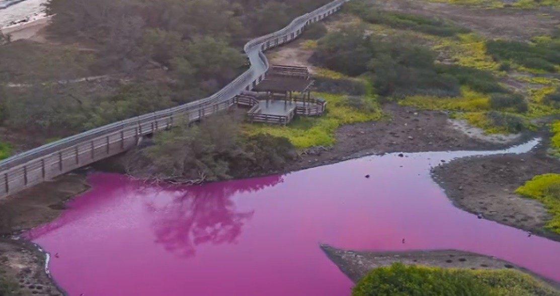 Σε χρώμα… ροζ βάφτηκαν τα νερά της λίμνης στο Εθνικό Καταφύγιο Άγριας Ζωής Kealia Pond στο Μάουι της Χαβάης, με τους ειδικούς να εκτιμούν πως το φαινόμενο είναι αποτέλεσμα αλοβακτηρίων τα οποία ευδοκιμούν σε νερό με ασυνήθιστα υψηλά επίπεδα αλατιού.