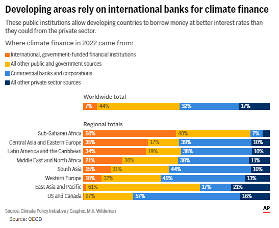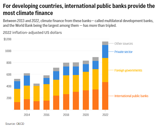 Αυτές οι τράπεζες ήταν ένας βασικός λόγος για τον οποίο το 2022 ο κόσμος πέτυχε τον στόχο που είχαν θέσει οι χώρες το 2009 να προμηθεύουν τα αναπτυσσόμενα έθνη με 100 δισ. δολάρια ετησίως για την αντιμετώπιση της κλιματικής αλλαγής.