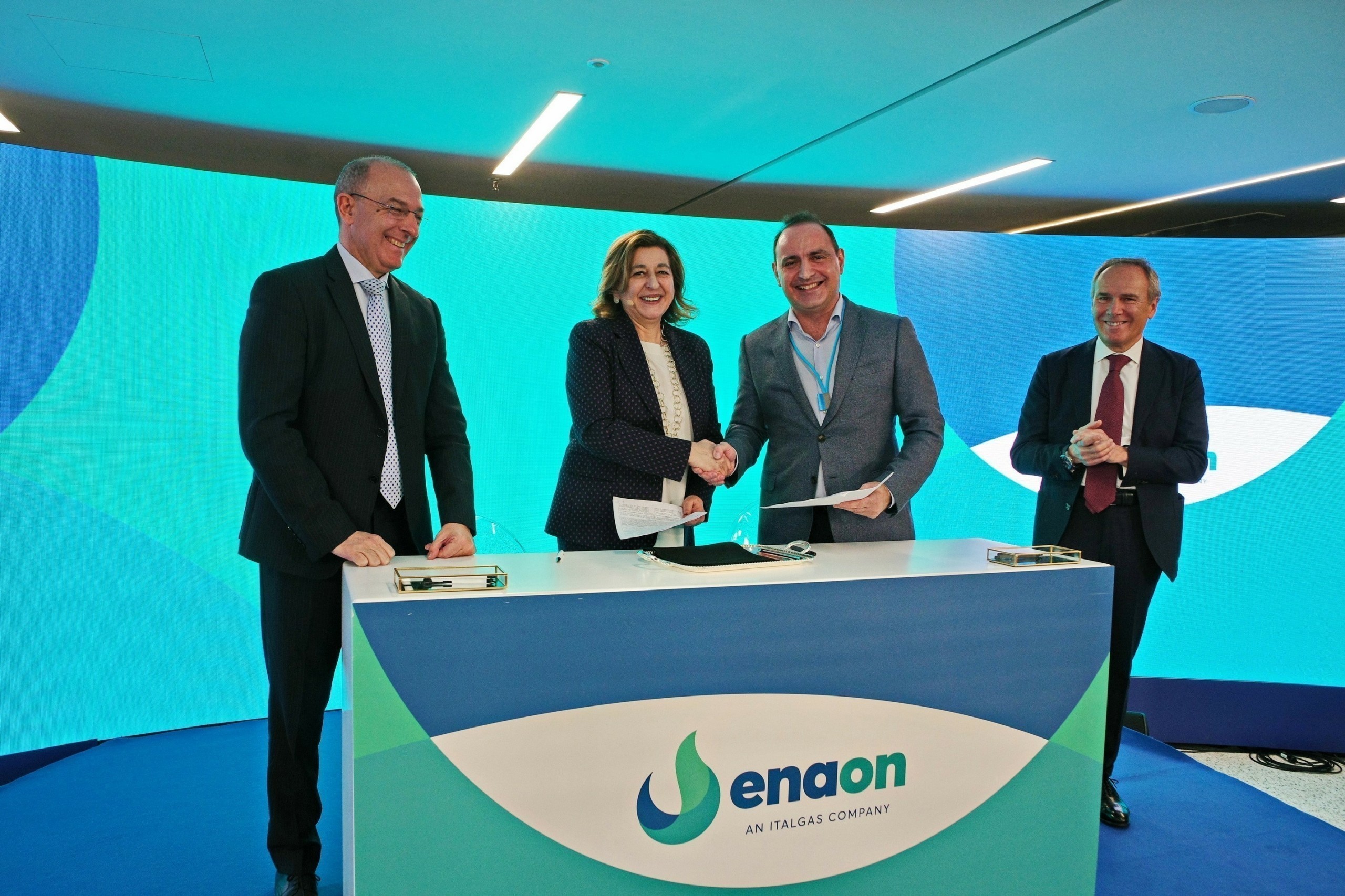 Με την ευκαιρία της παρουσίασης της νέας επωνυμίας, η Enaon υπέγραψε Μνημόνιο Συνεργασίας με τον ΕΣΠΑΒ, τον Ελληνικό Σύνδεσμο Παραγωγών Βιοαερίου, ο οποίος εκπροσωπεί σήμερα 48 παραγωγούς βιοαερίου που έχουν ήδη εκδηλώσει μεγάλο ενδιαφέρον για την μετατροπή της μονάδας τους για την παραγωγή βιομεθανίου, το οποίο θα διοχετευθεί στα δίκτυα διανομής.