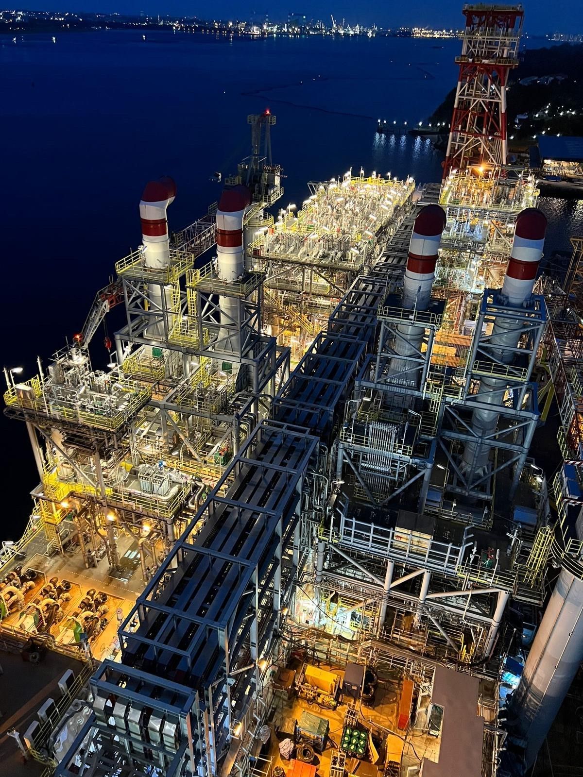 Ιδιαίτερα εντυπωσιακές είναι οι εικόνες που έρχονται από το ναυπηγείο Admiralty της Σιγκαπούρης, οι οποίες δείχνουν το FPSO “Energean Power” φωτισμένο τη νύκτα και τις πρώτες πρωινές ώρες.