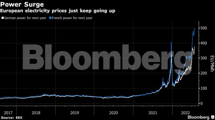 Ενδεικτικό της κατάστασης είναι το γεγονός τα συμβόλαια ηλεκτρικής ενέργειας στη Γερμανία για το επόμενο έτος σκαρφάλωσαν στο ρεκόρ των 380 ευρώ (384,58 $) τη μεγαβατώρα στο European Energy Exchange AG. Αντίστοιχα στη Γαλλία η τιμή εκτινάχθηκε στα 499,50 ευρώ ανά μεγαβατώρα, επίσης υψηλό όλων των εποχών.