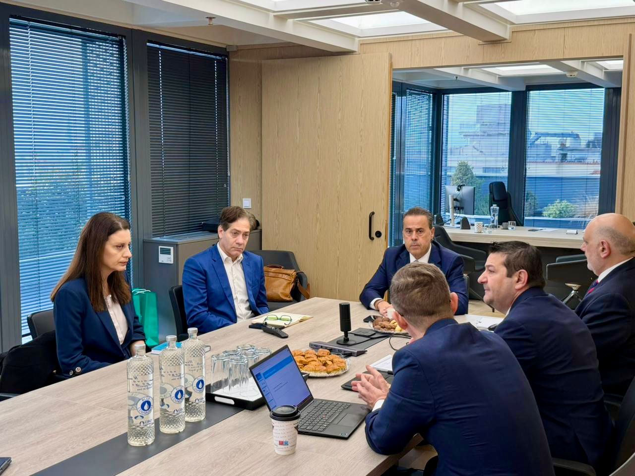 Ο Υπουργός Περιβάλλοντος και Ενέργειας, κ. Σταύρος Παπασταύρου συνοδευόμενος από τον Γενικό Γραμματέα Φυσικού Περιβάλλοντος και Υδάτων, κ. Πέτρο Βαρελίδη επισκέφθηκαν τα κεντρικά γραφεία της Εταιρείας Ύδρευσης και Αποχέτευσης Θεσσαλονίκης, όπου συναντήθηκαν με τον Διευθύνοντα Σύμβουλο της ΕΥΑΘ, κ. Άνθιμο Αμανατίδη, τον Πρόεδρο, κ. Άγι Παπαδόπουλο, τον Αντιπρόεδρο Γρηγόρη Πενέλη, το μέλος του ΔΣ Μαρία Πεταλά καθώς και υπηρεσιακά στελέχη της εταιρείας.