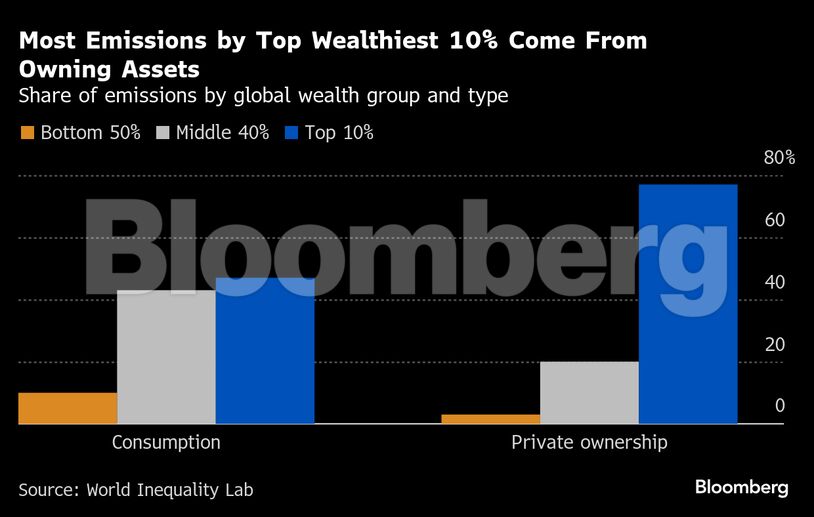 Σύμφωνα με τη μεθοδολογία του εργαστηρίου, η πλειονότητα των εκπομπών των πλουσιότερων ατόμων προέρχεται από την ιδιοκτησία περιουσιακών στοιχείων. Στις Ηνωμένες Πολιτείες, τη Γαλλία και τη Γερμανία, περίπου 75% των εκπομπών του πλουσιότερου 10% προέρχεται από τα περιουσιακά τους στοιχεία, ενώ για το ανώτερο 1% το ποσοστό αυτό φτάνει το 90%.