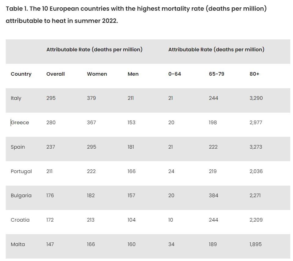 Όπως προέκυψε από τις μετρήσεις, 61.672 θάνατοι συνδέονται με τις υψηλές θερμοκρασίες που επικράτησαν στις ευρωπαϊκές χώρες μεταξύ 30 Μαΐου και 4 Σεπτεμβρίου 2022.