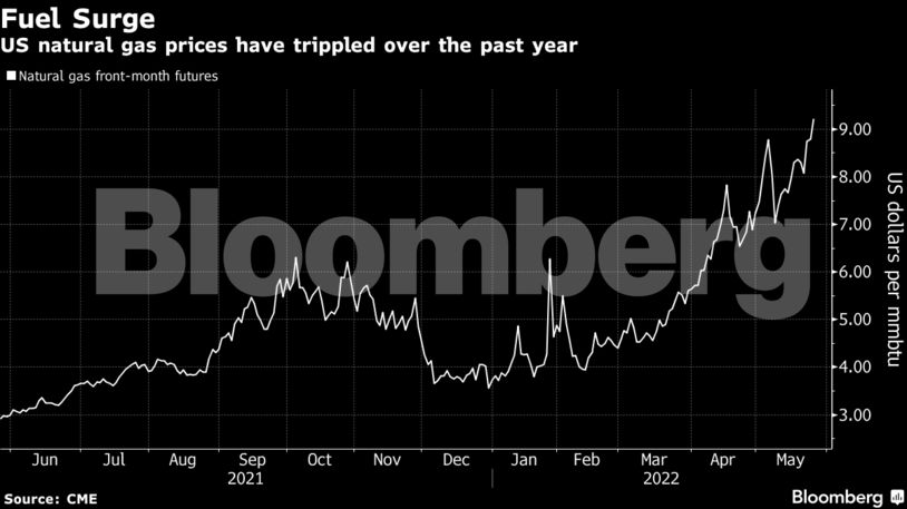 Η τιμή του φυσικού αερίου στις ΗΠΑ εκτοξεύθηκε πάνω από τα 9 δολάρια ανά mbtu για πρώτη φορά από το 2008, επεκτείνοντας ένα ιλιγγιώδες ράλι καθώς εντείνονται οι φόβοι για κρίση εφοδιασμού.