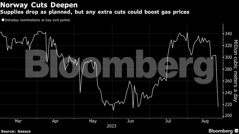 Επιπλέον, οι ροές προς την Ευρώπη από τον κορυφαίο πάροχο της Νορβηγίας μειώθηκαν στο χαμηλότερο επίπεδο των τελευταίων δύο μηνών, καθώς οι μειώσεις χωρητικότητας ενισχύθηκαν στο γιγάντιο πεδίο Troll εν μέσω εποχικής συντήρησης. Η εγκατάσταση πρόκειται να σταματήσει εντελώς τις προμήθειες από σήμερα Σάββατο 26 Αυγούστου έως τις 7 Σεπτεμβρίου -μαζί με το μεγάλο εργοστάσιο επεξεργασίας Kollsnes – και τυχόν επεκτάσεις στα έργα θα μπορούσαν να ωθήσουν τις τιμές υψηλότερα.
