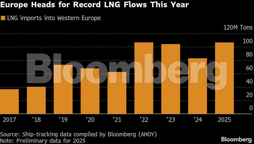 Σύμφωνα με τη Διεθνής Υπηρεσία Ενέργειας, οι εισαγωγές LNG στην Ευρώπη εκτιμάται ότι έφτασαν φέτος σε ιστορικό υψηλό.