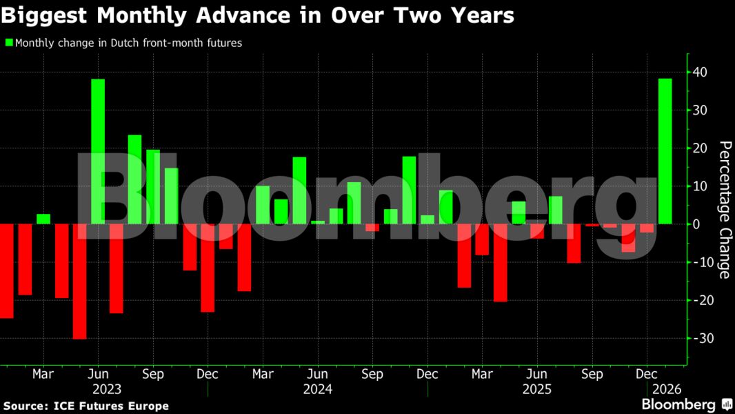 Η ευρωπαϊκή αγορά φυσικού αερίου οδεύει προς το υψηλότερο μηνιαίο κέρδος τουλάχιστον των τελευταίων δύο ετών, καθώς οι χαμηλές θερμοκρασίες και η γρήγορη απομείωση των αποθεμάτων ανέτρεψαν τις ισορροπίες στην αγορά καυσίμων.