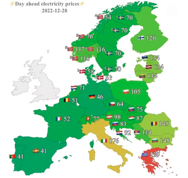 Σήμερα ανέρχονται σε περίπου 77 ευρώ η μεγαβατώρα από 149 που ήταν στις 7 Δεκεμβρίου και από 210 ευρώ που ήταν στο τέλος Σεπτεμβρίου