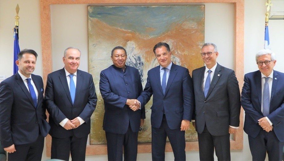 «O ΥΠΑΝΕΠ Άδωνις Γεωργιάδης και ο ΑΝΥΠΑΝΕΠ Νίκος Παπαθανάσης με τον Γενικό Γραμματέα του Οργανισμού Εξαγωγών Πετρελαιοπαραγωγών Χωρών (ΟΠΕΚ), Mohammad Sanusi Barkindo.