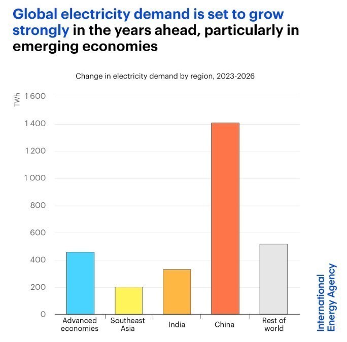 It shows global electricity use is expected to grow quickly over the next three years.