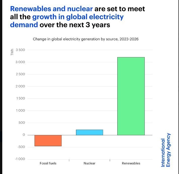 But renewables & nuclear generation are set to cover all of the world’s additional demand.
