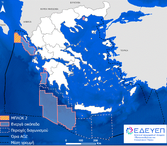 Το Μπλοκ 2 παραχωρήθηκε αρχικά στην κοινοπραξία των εταιρειών Total 50%, Edison 25% και ΕΛΠΕ 25%, τον Μάρτιο του 2018. Τον Φεβρουάριο του 2021 η Energean Hellas απέκτησε το μερίδιο 50% που κατείχε η Τotal στο Block 2 στο Βορειοδυτικό Ιόνιο και κατέστη, παράλληλα, Διαχειριστής (Οperator) στη συγκεκριμένη παραχώρηση.