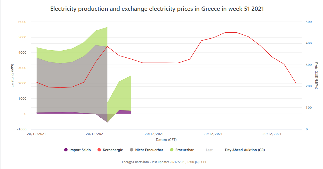 Στην αρχή της εβδομάδας η τιμή η τιμή του ηλεκτρικού ρεύματος ήταν στα 216,21 ανά μεγαβατώρα.
