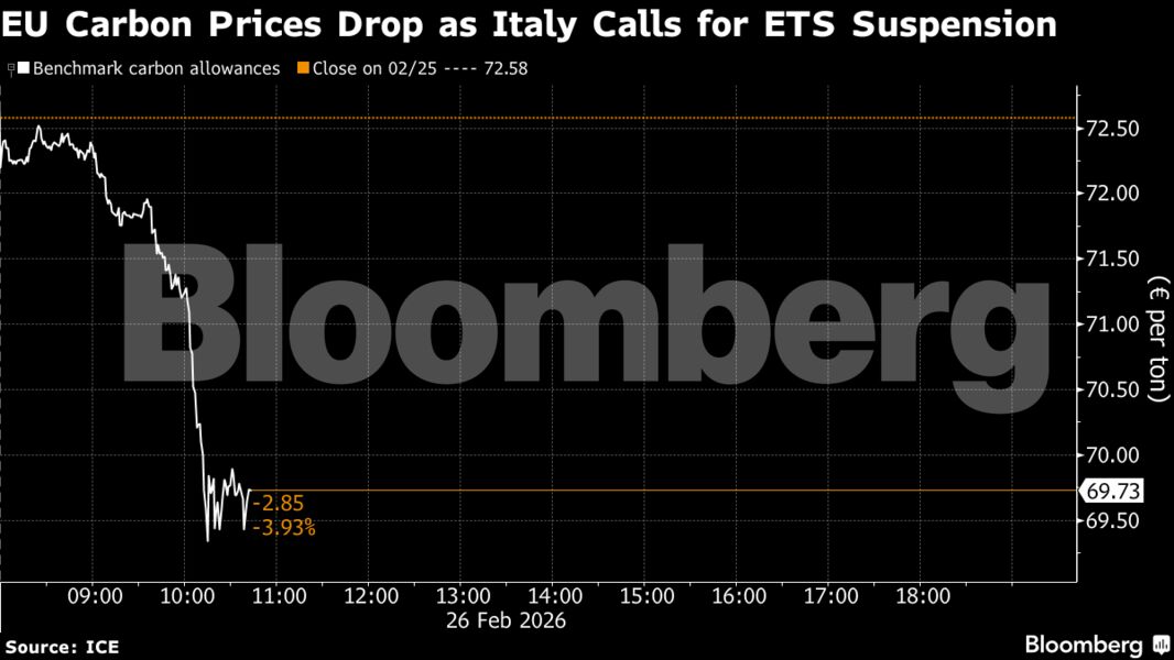 Η κυβέρνηση της Ιταλίας ζητά την αναστολή της λειτουργίας της αγοράς άνθρακα της Ευρωπαϊκής Ένωσης, έως ότου ολοκληρωθεί μια αναθεώρηση και αναδιαμόρφωση του συστήματος, αυξάνοντας την πίεση στο κύριο εργαλείο της ΕΕ για τον περιορισμό των εκπομπών CO2.