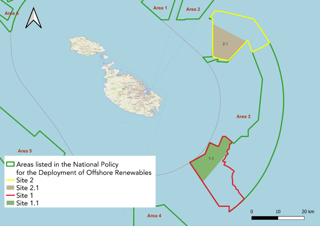 Οι δύο περιοχές βρίσκονται εντός της Αποκλειστικής Οικονομικής Ζώνης (ΑΟΖ) της Μάλτας και προέκυψαν μετά τον περιορισμό της αρχικής λίστας έξι περιοχών που είχαν προσδιοριστεί μετά από διαβουλεύσεις με διεθνείς εμπειρογνώμονες, στρατηγικές περιβαλλοντικές αξιολογήσεις και λεπτομερείς μελέτες.
