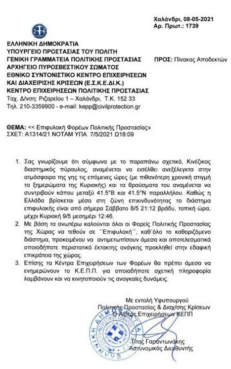 Η ισχύς του, δηλαδή το διάστημα επιφυλακής ειναι απο σήμερα Σάββατο 8/5 21:12 βράδυ, τοπική ώρα, μέχρι αύριο Κυριακή 9/5 μεσημέρι 12:46.