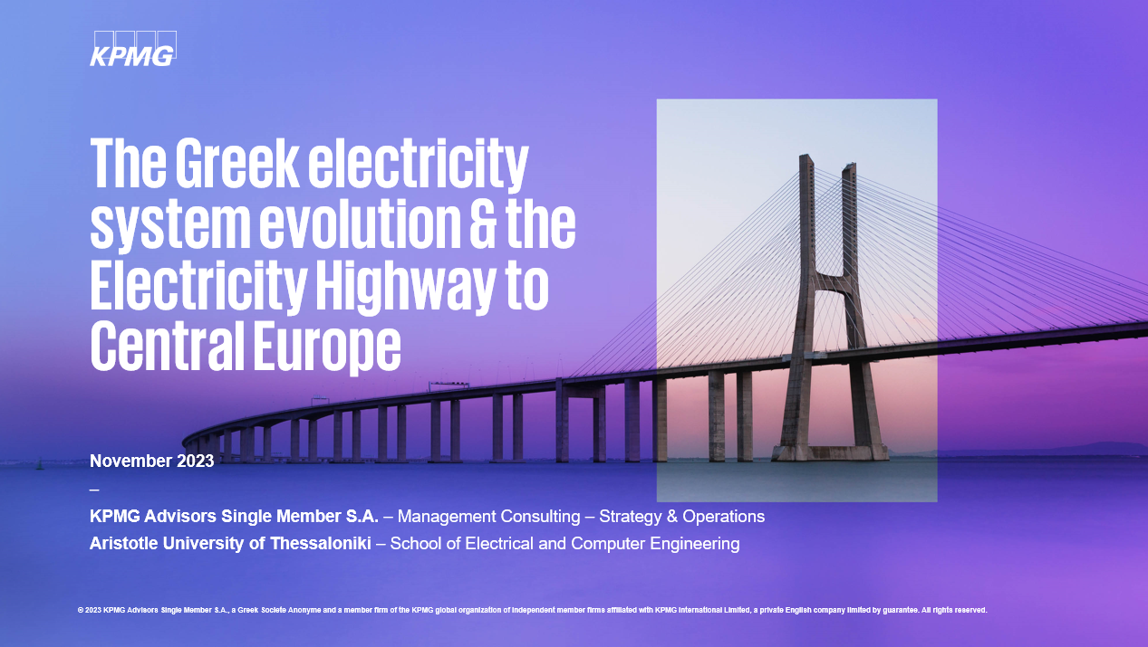 Η KPMG, σε συνεργασία με το Αριστοτέλειο Πανεπιστήμιο Θεσσαλονίκης, ολοκλήρωσε τη μελέτη “The Greek electricity system evolution & the electricity highway to Central Europe” για να διερευνήσει τα μακροπρόθεσμα οφέλη που προκύπτουν από την κατασκευή και λειτουργία μιας ηλεκτρικής διασύνδεσης της Ελλάδας με την Κεντρική Ευρώπη – χρησιμοποιώντας ως παράδειγμα τον “South East-North Electricity Highway” (SENEH), χωρητικότητας 9GW, μεταξύ Ελλάδας και Γερμανίας. Απώτερος στόχος αυτής της ανάλυσης είναι να εκτιμηθεί το συνολικό όφελος στο κόστος προμήθειας ηλεκτρικής ενέργειας για τους τελικούς καταναλωτές καθώς και σε επίπεδο εθνικής οικονομίας που προκύπτει από την κατασκευή και λειτουργία μιας τέτοιας διασύνδεσης.