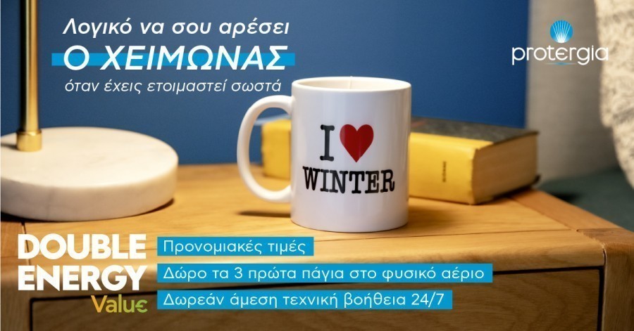 Ο χειμώνας είναι προ των πυλών, αλλά δεν υπάρχει λόγος για ανησυχία! Η Protergia – αναπόσπαστο κομμάτι της MYTILINEOS, της μεγαλύτερης ιδιωτικής εταιρείας ενέργειας στην Ελλάδα – με το Double Energy Value προσφέρει ένα σημαντικό λόγο … για να λατρέψεις το χειμώνα!