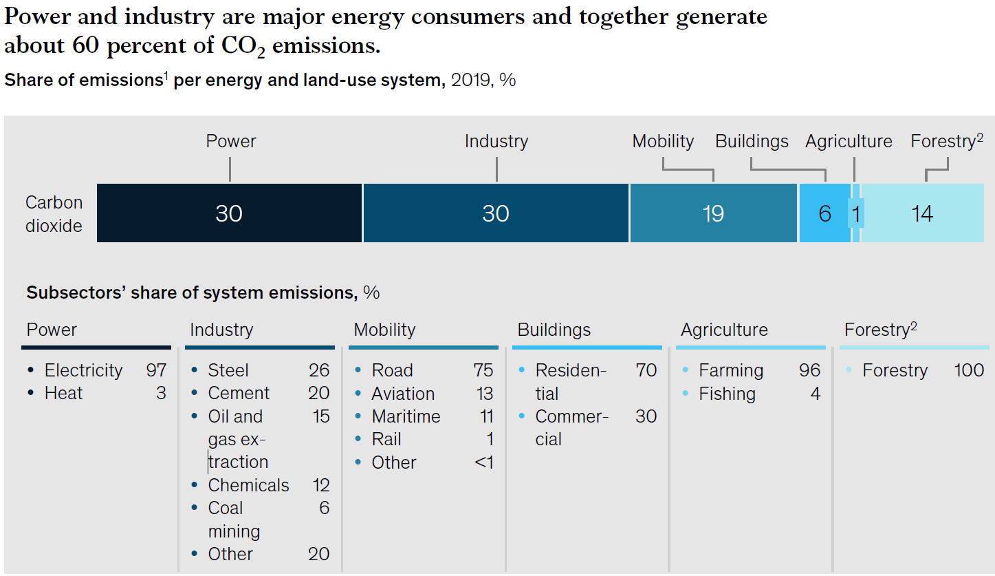 Επτά κλάδοι κατανάλωσης ενέργειας και χρήσης γης λειτουργούν ως άμεσες πηγές παγκόσμιων εκπομπών ρύπων και θα χρειαστεί να τροποποιήσουν δραστικά το μοντέλο λειτουργίας τους: