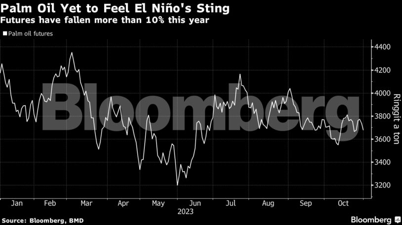 Ακόμα και με το Ελ Νίνιο, όμως, οι τιμές έχουν καταγράψει μείωση της τάξης του 11% φέτος και έχουν μειωθεί στο ήμισυ σε σχέση με το υψηλό περσινό ρεκόρ των 7.200 ρίνγκιτ/τόνο.