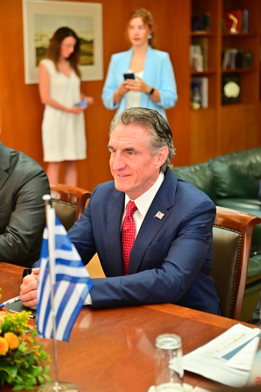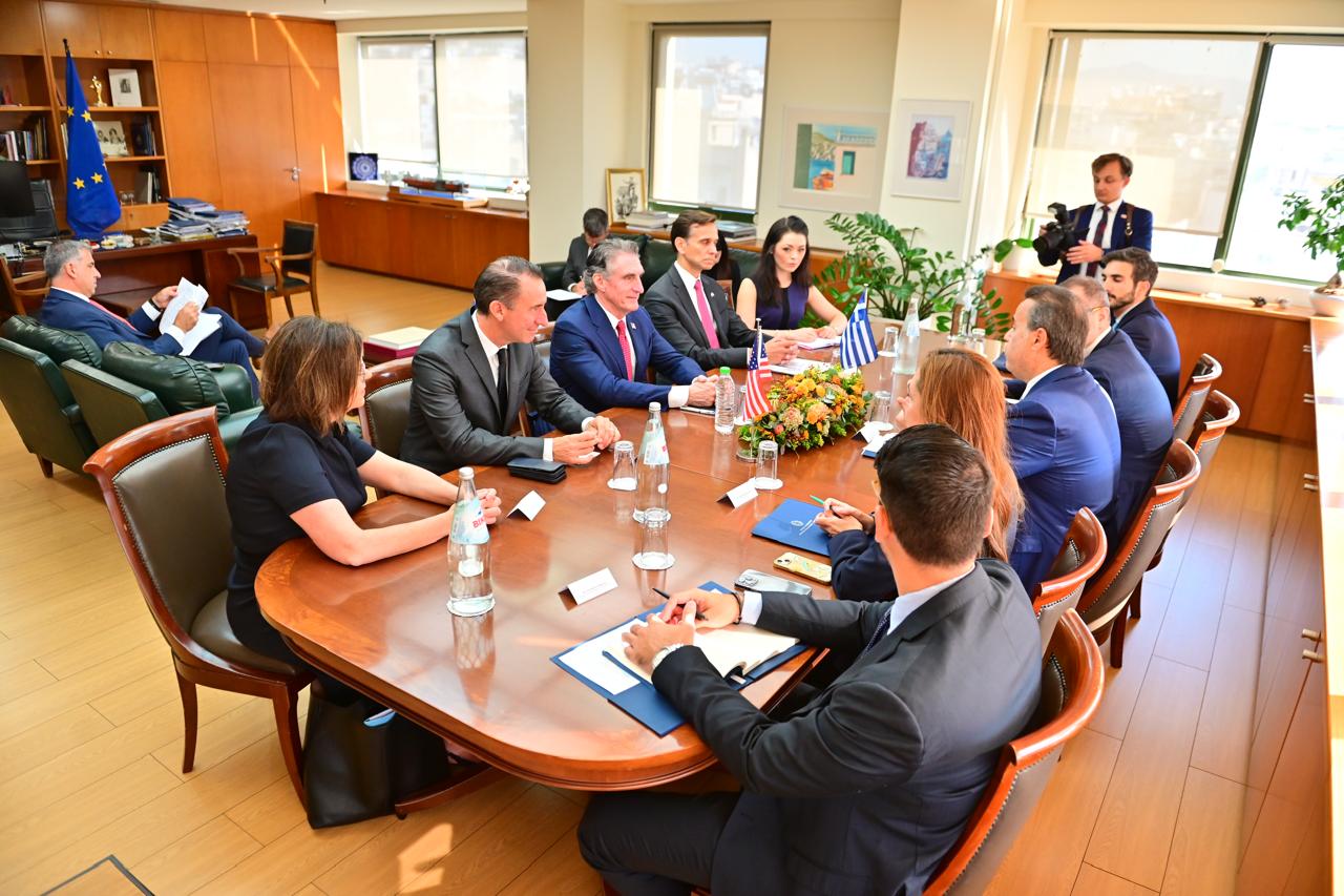 Στρατηγικά ζητήματα στο πλαίσιο της ευρύτερης ενεργειακής συνεργασίας Ελλάδας – ΗΠΑ, συζήτησε μεταξύ άλλων ο υπουργός Εσωτερικών και Επικεφαλής του Συμβουλίου Ενεργειακής Κυριαρχίας των ΗΠΑ, κ. Νταγκ Μπέργκαμ, κατά την συνάντηση που είχε με τον υπουργό Περιβάλλοντος και Ενέργειας, ο κ. Σταύρο Παπασταύρου και τον υφυπουργός, κ. Νίκος Τσάφο.