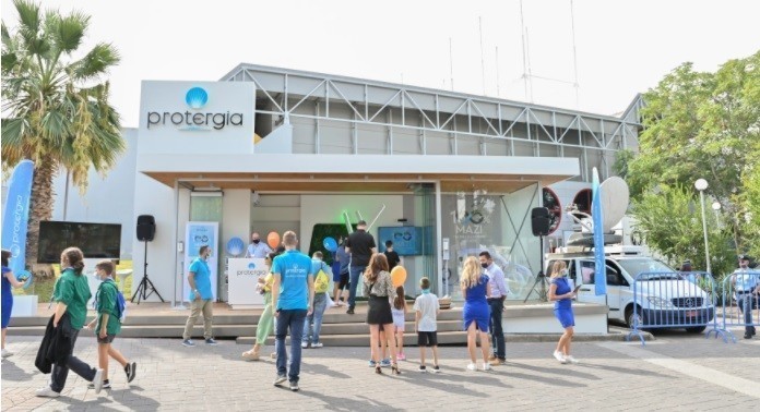 Η Protergia μέχρι σήμερα έχει καταφέρει να δείξει το μέλλον της ενέργειας, τόσο σε σχέση με την ηλεκτρική ενέργεια όσο και με το φυσικό αέριο και αυτό βιώνουν όσοι περνάνε από το περίπτερο της εταιρείας, το οποίο ανανεώθηκε με κύριους άξονες την βιωσιμότητα και την ηλεκτροκίνηση δημιουργώντας μία εντυπωσιακή, μοντέρνα και φουτουριστική διάθεση η οποία συνοδεύεται από τεχνολογίες αιχμής που ταιριάζουν με το καινοτόμο προφίλ της Protergia. Γι’ αυτό άλλωστε, ο πυρήνας του περιπτέρου διχοτομείται με έναν πολύ δημιουργικό και φουτουριστικό τρόπο σε 2 πλευρές, που εκφράζονται με πράσινο και μπλε χρώμα, και αναδεικνύουν το Sustainability και το E-mobility αντιστοίχως.