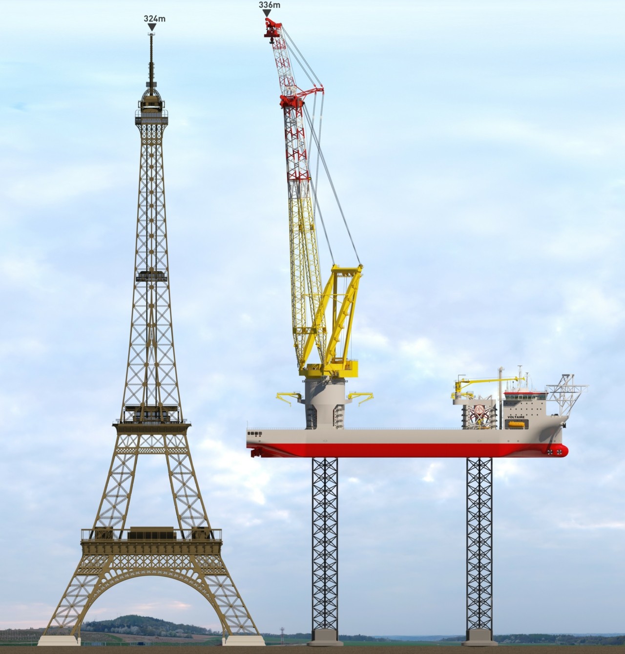 Το ιδιαίτερο του όλου πρότζεκτ, όμως, είναι και το καράβι το οποίο χρησιμοποιείται για την έγερση των τουρμπινών αυτών. Με συνολική ανυψωτική ικανότητα φορτίων 3.200 τόνων, ο «Βολταίρος» θα εγκαταστήσει 277 τουρμπίνες Haliade-X μέχρι την ολοκλήρωση του προγράμματος.