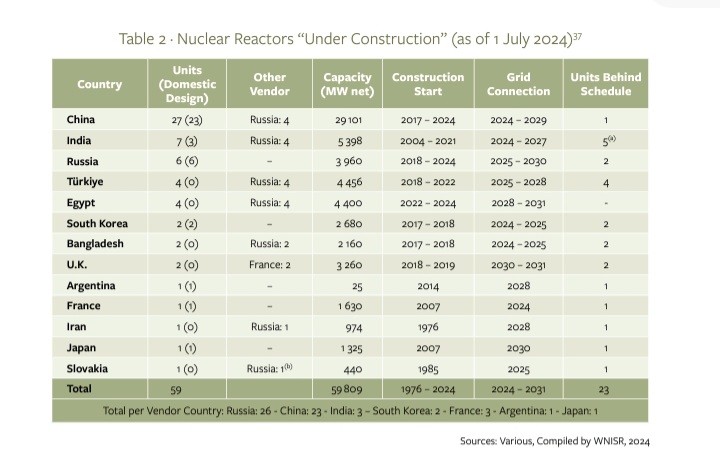 Η Κίνα που επίσης έχει στήσει μια εντυπωσιακή μηχανή πυρηνικής ενέργειας και τα Ηνωμένα Αραβικά Εμιράτα, τα οποία τα τελευταία 20 χρόνια έχουν ξεκινήσει με τους Κορεάτες από το μηδέν και έχουν να παρουσιάσουν ικανοποιητικά αποτελέσματα. Σε Γαλλία, Αγγλία, Σλοβακία τα πρότζεκτ είναι όλα over budget με την Σλοβακία να στέκει στην κορυφή αφού η κατασκευή έφτασε τα 38,1 χρόνια με μια ενδιάμεση περίοδο παύσης. Στην Φιλανδία αντίστοιχα η διάρκεια της κατασκευής ήταν 4,5 χρόνια και οι καθυστερήσεις έχουν φτάσει τα 16 χρόνια. Η Γαλλία ξεκίνησε το 2007 και ακόμα δεν έχει συνδεθεί στο δίκτυο.