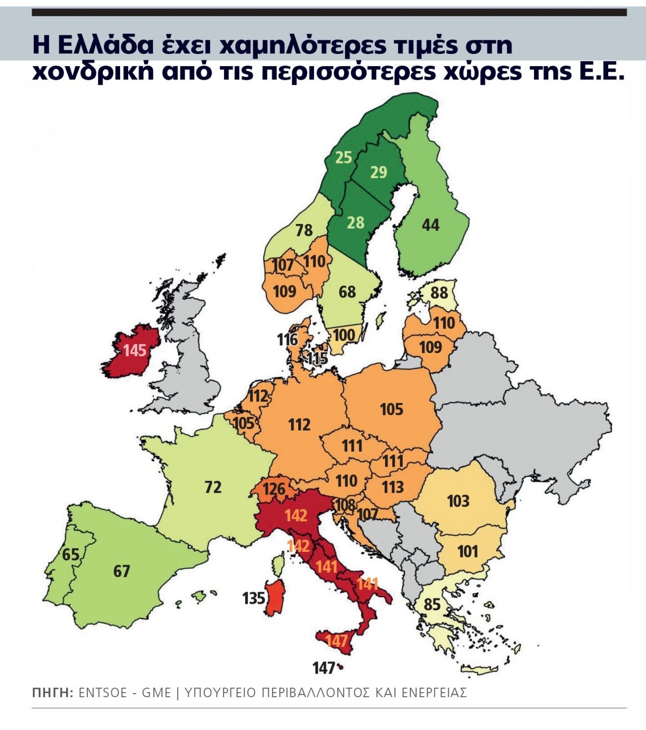 Παραδοσιακά, μια τέτοια εξέλιξη θα οδηγούσε σε άμεση και ισχυρή αύξηση του κόστους ηλεκτροπαραγωγής, δεδομένου ότι οι μονάδες φυσικού αερίου αποτελούν βασικό πυλώνα του ευρωπαϊκού ενεργειακού συστήματος. Ωστόσο, στην Ελλάδα η εικόνα αποδείχθηκε διαφορετική. Η μέση τιμή για το πρώτο δεκαήμερο του μήνα διαμορφώθηκε περίπου στα 85,5 ευρώ/μεγαβατώρα, επίπεδο σημαντικά χαμηλότερο από εκείνο που θα μπορούσε να προκύψει σε μια περίοδο έντονης ενεργειακής αναταραχής.