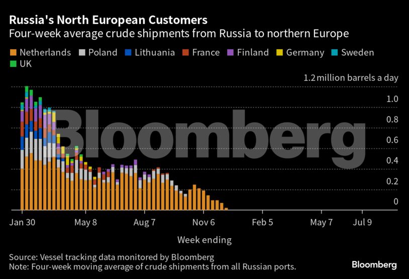 Η αγορά η οποία κατανάλωνε περίπου 1,5 εκατ. βαρέλια/ημέρα καθημερινά τα οποία προέρχονταν από λιμάνια της Βαλτικής της Μαύρης και της Αρκτικής θάλασσας, έχει πια χαθεί. Οι αποστολές των τάνκερ στα λιμάνια της Ασίας είναι πολύ πιο χρονοβόρες και ακριβές.