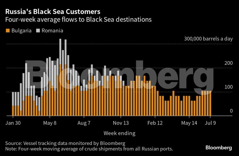 Οι εξαγωγές πετρελαίου μέσω θαλασσίας οδού της Ρωσίας προς την Ευρώπη έχουν παραμείνει σταθερές στα 104.000 βαρέλια/ημέρα, με την Βουλγαρία να αποτελεί τον μόνο προορισμό. Τα στοιχεία αυτά δεν συμπεριλαμβάνουν ροές προς την Τουρκία.