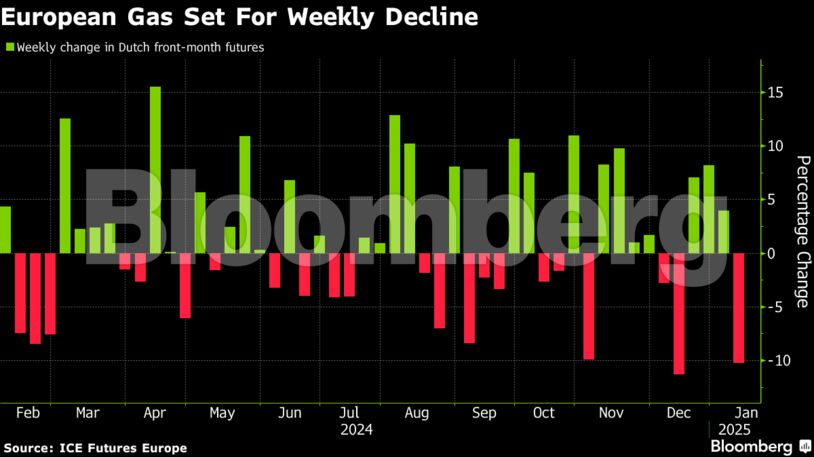 Οι ευρωπαϊκές τιμές του φυσικού αερίου είναι έτοιμες για την πρώτη εβδομαδιαία πτώση από τα μέσα Δεκεμβρίου, καθώς μειώνονται οι ανησυχίες για την προσφορά στην αγορά.