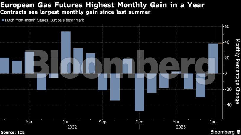 Πάντως, τα συμβόλαια μελλοντικής εκπλήρωσης αναφοράς ολοκλήρωσαν τον Ιούνιο με περισσότερο από 30% υψηλότερα, καταγράφοντας το μεγαλύτερο μηνιαίο άλμα από το περασμένο καλοκαίρι, κοντά στο αποκορύφωμα της ενεργειακής κρίσης.