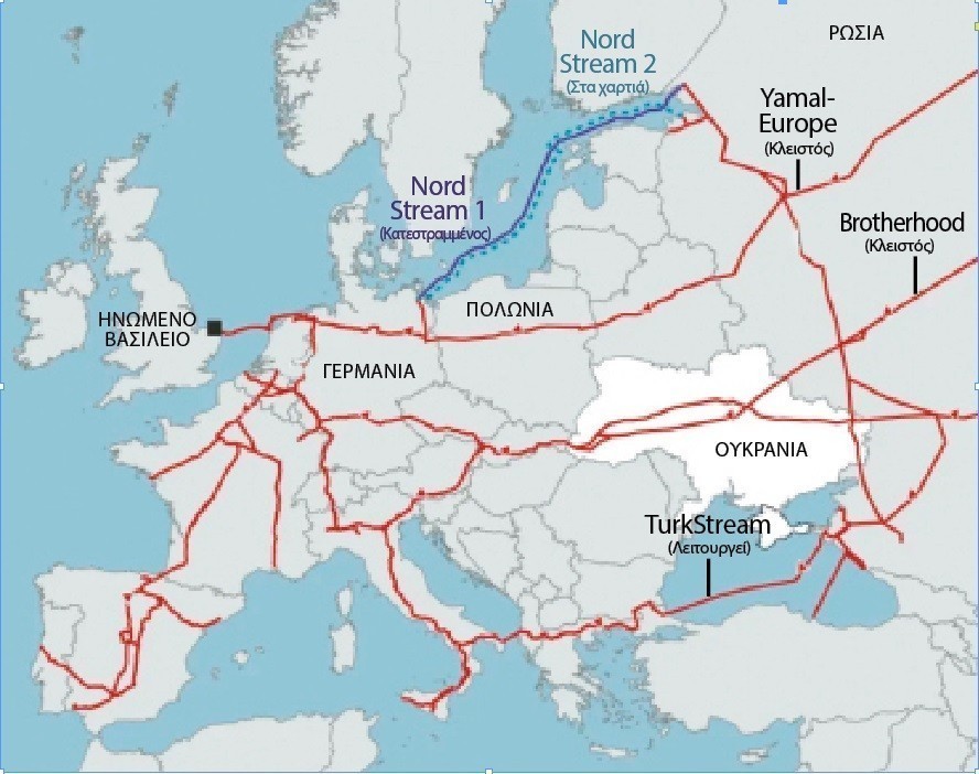 Με την αντίδραση αυτή της αγοράς, θα μπορούσε να φανταστεί κανείς ότι η διακοπή της ροής φυσικού αερίου από τον αγωγό της Ουκρανίας, που τροφοδοτούσε την Ευρώπη με τον ρωσικό «γαλάζιο χρυσό» εδώ και περίπου μισό αιώνα, θα αποτελούσε καταστροφή για τη Γηραιά Ηπειρο. Από την εποχή της Σοβιετικής Ενωσης και έπειτα από τη Ρωσία, το μερίδιο της Μόσχας στον ενεργειακό εφοδιασμό της Ευρώπης ήταν υψηλό, φτάνοντας στο 35%. Μετά την εισβολή της Ρωσίας στην Ουκρανία, ωστόσο, τα πράγματα άλλαξαν για την Gazprom. Ο αγωγός Υamal-Εurope μέσω Λευκορωσίας έχει κλείσει. Ο αγωγός Nord Stream που συνδέει τη Γερμανία με τη Ρωσία υπέστη ζημιές από εκρήξεις το 2022, ενώ η νεότερη σύνδεση Nord Stream 2 δεν εγκρίθηκε ποτέ από το Βερολίνο.