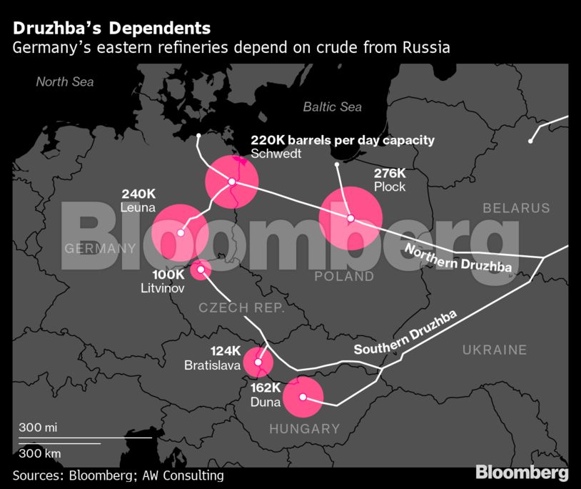 Εκπρόσωπος της τσεχικής εταιρείας MERO σημείωσε ότι δεν έχει διαπιστώσει αλλαγές στις ροές στην Τσεχία, ενώ προς το παρόν δεν κατέστη δυνατό να υπάρξει επικοινωνία με το διυλιστήριο Schwedt της Γερμανίας, το οποίο παρέχει το 90% του καυσίμου στο Βερολίνο, ούτε με το υπουργείο Οικονομίας και τον ομοσπονδιακό φορέα διαχείρισης του δικτύου.