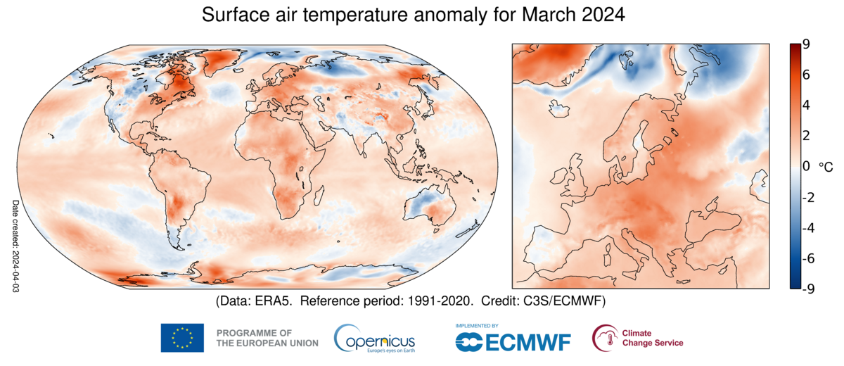 «Ο Μάρτιος του 2024 συνεχίζει τη σειρά των κλιματικών ρεκόρ που καταρρίπτονται τόσο για τη θερμοκρασία του αέρα όσο και για τις θερμοκρασίες στην επιφάνεια των ωκεανών», εξήγησε η Σαμάνθα Μπέρτζες, αναπληρώτρια διευθύντρια της Υπηρεσίας Κλίματος του Copernicus (C3S).
