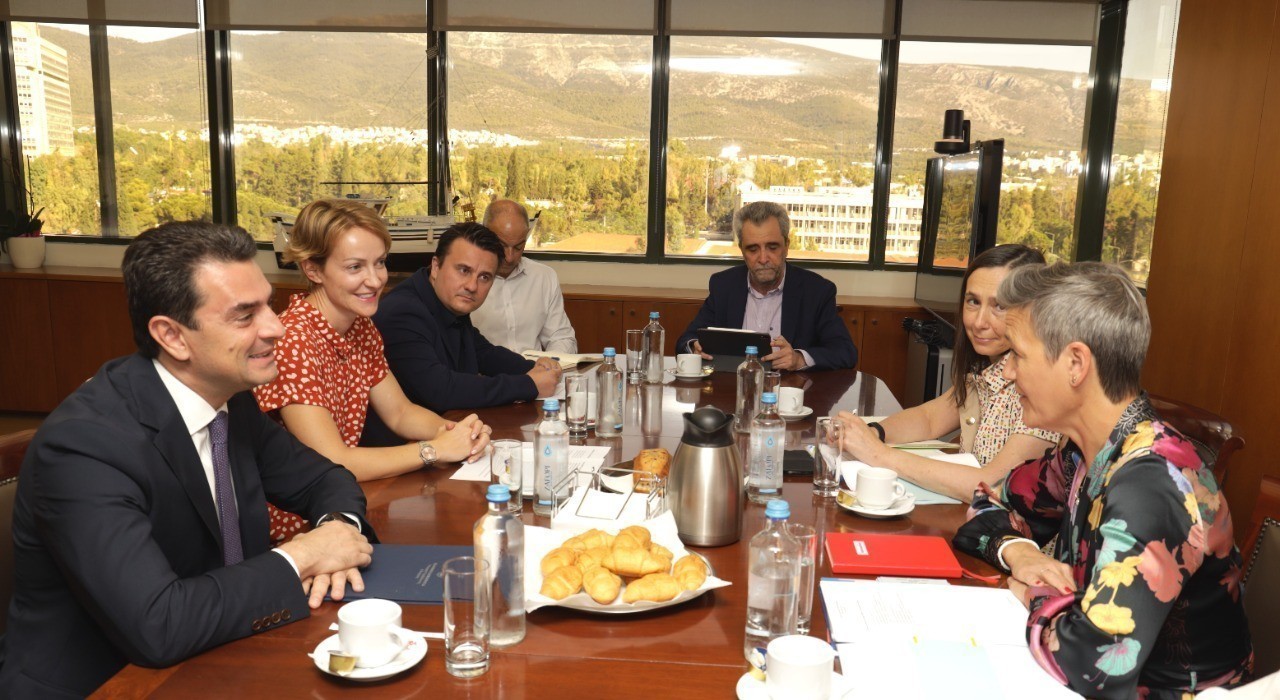 Κατά την συνάντηση με την Ευρωπαία αξιωματούχο, ο υπουργός Περιβάλλοντος και Ενέργειας έκανε ιδιαίτερη αναφορά και στη θεσμική παρέμβαση της Κυβέρνησης στη χονδρεμπορική αγορά ηλεκτρικής ενέργειας με τη σύσταση του μηχανισμού ανάκτησης των υπερεσόδων των ηλεκτροπαραγωγών, ο οποίος έχει ενσωματωθεί στο ίδιο νομοσχέδιο.