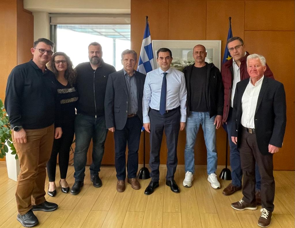 Ο Υπουργός Περιβάλλοντος και Ενέργειας, Κώστας Σκρέκας, συναντήθηκε με το Διοικητικό Συμβούλιο της Πανελλήνιας Ομοσπονδίας Εργαζομένων Δημοτικών Επιχειρήσεων Ύδρευσης και Αποχέτευσης (ΔΕΥΑ), στην οποία συμμετείχε και ο Πρόεδρος της Ομοσπονδίας Εργαζομένων των ΔΕΥΑ, Παύλος Δραγκόλας.