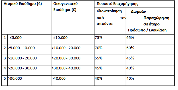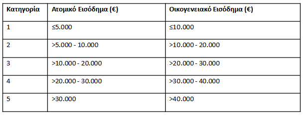 Δυνητικοί ωφελούμενοι του προγράμματος μπορεί να είναι οι αιτούντες που εντάσσονται στις παρακάτω εισοδηματικές κατηγορίες: