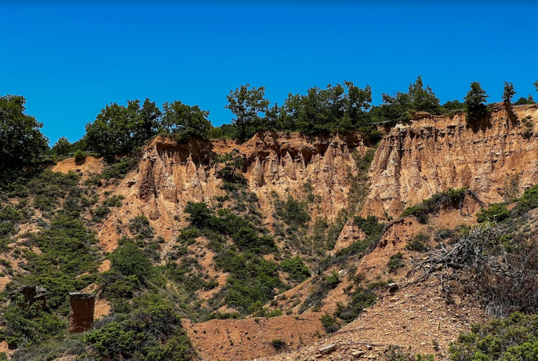 Τα Μπουχάρια είναι ένας μοναδικός και εντυπωσιακός γεωλογικός σχηματισμός που προέκυψε από την διάβρωση του εδάφους σε διάστημα χιλιάδων ετών. Τα Μπουχάρια είναι ιδιόμορφες χωμάτινες κολώνες που το ύψος τους κυμαίνεται από 2 έως 6 μέτρα και το πλάτος τους από 1 έως 2,5 μέτρα. Συνολικά στο πάρκο υπάρχουν 20 τέτοιες κολώνες που αποτελούνται από αργίλους , άμμους , κροκάλες ενώ πιθανών λειτουργούν ως συγκολλητική ύλη τα οξείδια του σιδήρου και το διοξείδιο του πυριτίου. Στην κορυφή τους υπάρχουν πλάκες από σχιστόλιθο , οι οποίες προστατεύουν τις χωμάτινες κολώνες από περαιτέρω διάβρωση. Η ονομασία τους οφείλεται στο σχήμα τους , καθώς η όψη τους μοιάζει με καμινάδα και στην τοπική διάλεκτο η καμινάδα ονομάζεται μπουχάρι.