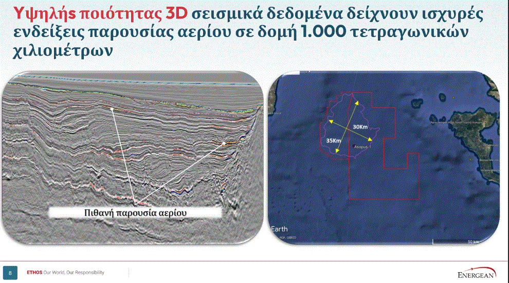Καθοριστική για την εξέλιξη αυτή υπήρξε η ολοκλήρωση των τρισδιάστατων σεισμικών ερευνών το 2022, με επένδυση περίπου 20 εκατ. δολαρίων. Τα δεδομένα απο τους γεωλόγους της Energean που κατείχε μέχρι τότε το 75% της παραχώρησης, αποτυπώνουν ισχυρές ενδείξεις παρουσίας φυσικού αερίου σε γεωλογική δομή περίπου 1.000 τετραγωνικών χιλιομέτρων και ανάβουν το πράσινο φως.