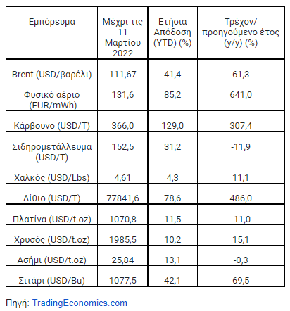 Οι τιμές όλων των βασικών εμπορευμάτων σημείωσαν πρωτοφανή αύξηση τον τελευταίο χρόνο. Η άνοδος της τιμής τους μπορεί να αποδοθεί σε μεγάλο βαθμό στην παγκόσμια οικονομική ανάκαμψη μετά τη χειρότερη φάση της πανδημίας του κορωνοϊού. Τις τελευταίες εβδομάδες, ο πόλεμος στην Ουκρανία έπαιξε σημαντικό ρόλο σε αυτή την αύξηση, σύμφωνα με όσα αναφέρει η CapitalPanda.
