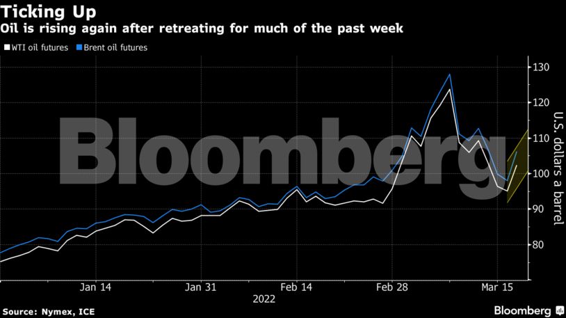 Το πετρέλαιο ανέβηκε πάνω από τα 100 δολάρια το βαρέλι καθώς η Ρωσία αμφισβητεί την πρόοδο των ειρηνευτικών συνομιλιών με την Ουκρανία.