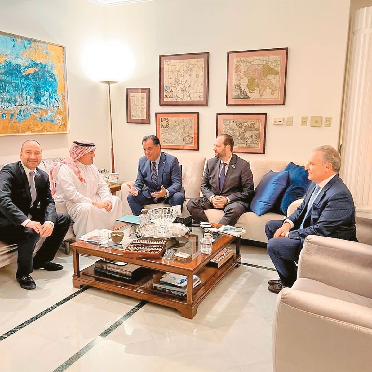 Σύμφωνα με πληροφορίες στην πρώτη συνεδρίαση εξετάστηκε μεταξύ άλλων η πορεία εξέλιξης των 17 επιχειρηματικών συμφωνιών που υπεγράφησαν το καλοκαίρι κατά την επίσημη επίσκεψη του διαδόχου του θρόνου της Σαουδικής Αραβίας Μοχάμεντ μπιν Σαλμάν.