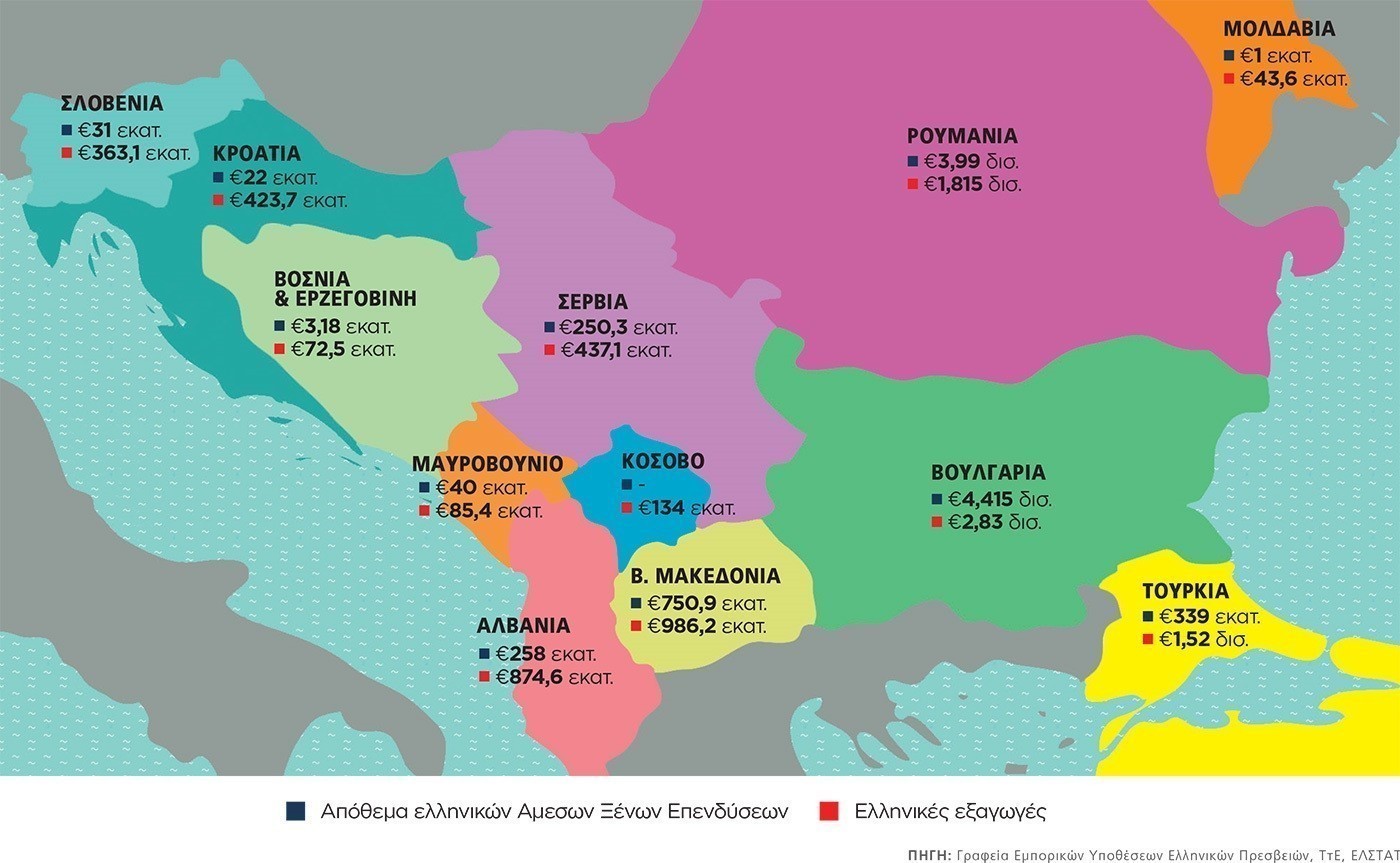 Ηδη, με βάση τα επίσημα στοιχεία, πάνω από 12.000 επιχειρήσεις ελληνικών συμφερόντων δραστηριοποιούνται στο λεγόμενο «βαλκανικό τόξο». Και φαίνεται ότι έπεται συνέχεια, αφού οι ελληνικές εταιρείες από διάφορους κλάδους αναζητούν εκ νέου ζωτικό χώρο για επέκταση και ανάπτυξη έχοντας σηκώσει τη σημαία της εξωστρέφειας.